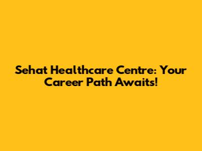 Sehat Healthcare Centre: Your Career Path Awaits!